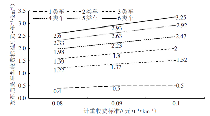 | 原计重收费标准 x/(元·t-1·km-1) | 改革后按车型收费标准y/(元·车-1·km-1) | |||||