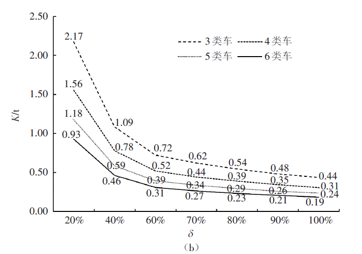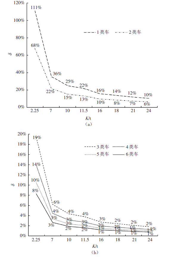| N轴货车实际载重率 | δ′=k/K′ (1) |