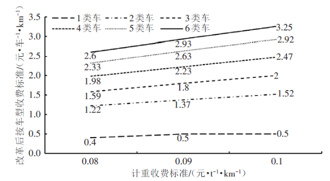 表4 按轴收费改革前后湖南省高速公路货车收费标准 |