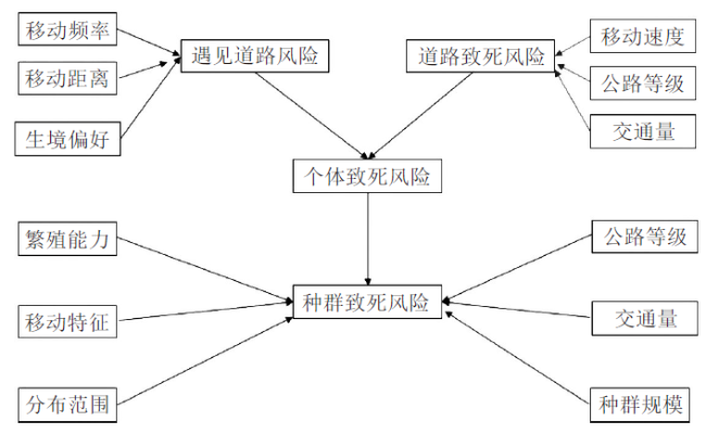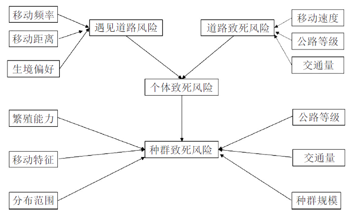 | 种群规模(优势种,常见种,偶见种,稀有种) | 种群规模越小,公路交通致死敏感性越高[17,18] | |