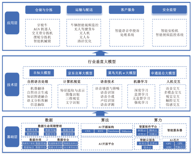 为缓解邮政业劳动力短缺的问题,加快人工智能在行业的落地应用,首先全面分析了人工智能赋能邮政业发展的机制,搭建了涵盖基础层、技术层和应用层的人工智能赋能邮政业的完整技术应用体系。在此基础上,通过案例研究和数据分析等研究方法,厘清了人工智能驱动邮政业转型升级的内在机制与影响路径,并针对当前人工智能在邮政业落地应用过程中面临的标准不统一、算力紧张、信息孤岛现象明显、应用场景少、用户隐私保护有待加强、专业人才短缺以及创新机制不健全等一系列问题,提出了搭建行业基础数据公共服务平台、整合算力资源、产品快速迭代、加强网络安全、人才培养和制度建设的针对性建议,为人工智能在邮政业的落地应用探索提供了参考。