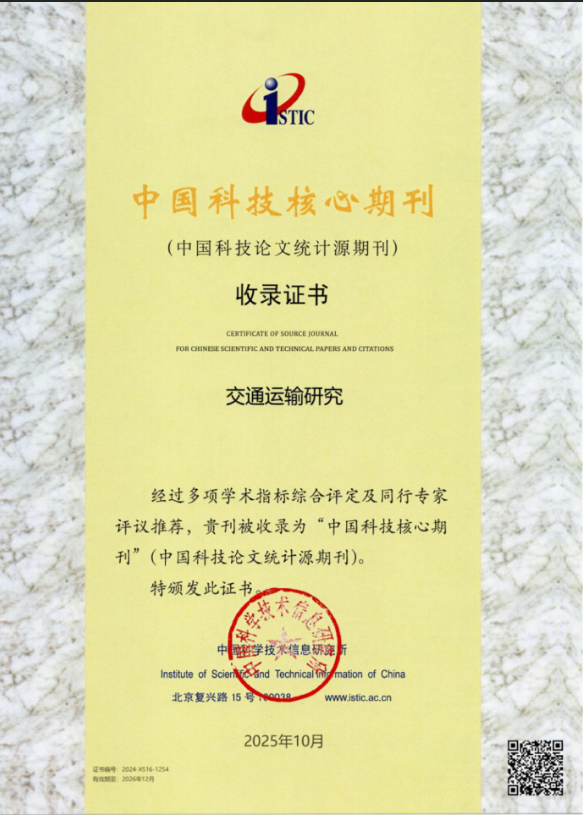 来之不易的荣誉是对《交通运输研究》期刊质量和办刊水平的充分肯定,反映出期刊在促进学术交流、服务政府决策、推进社会发展方面的能力建设得到了有力提升。所有成绩的取得,离不开各级领导和行业专家的关心指导,离不开编委团队和审稿专家的支持把关,更离不开众多作者和广大读者一如既往的信任厚爱。
